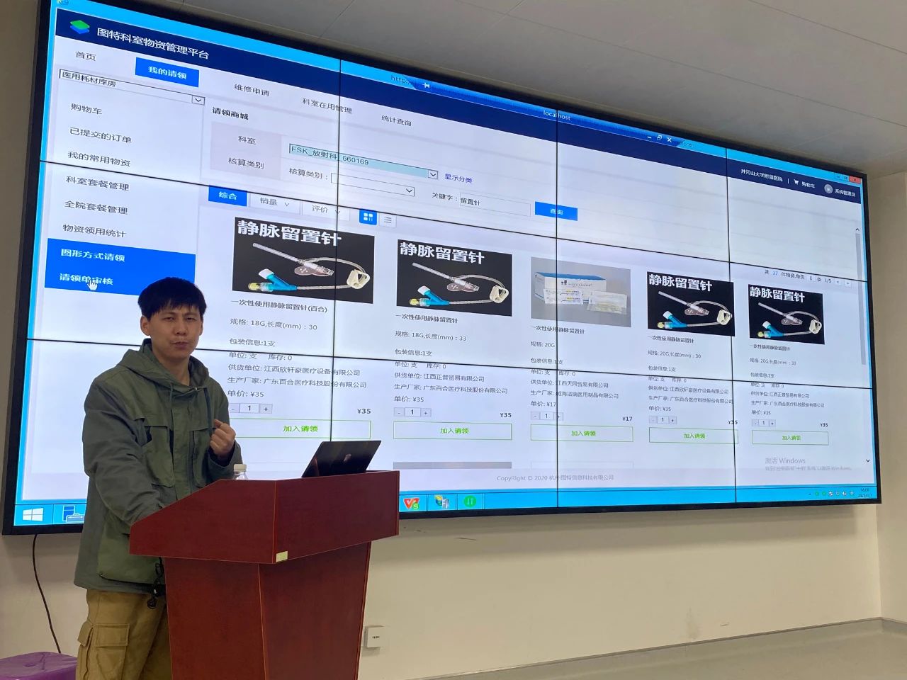 会议由图特工程师演示如何在网上清领每月常用医用耗材、清领单据查询与管理、常用医用耗材功能添加、医用耗材月计划汇总、医用耗材采购订单的形成、以及探讨如何更好地、更便捷建立二级库。