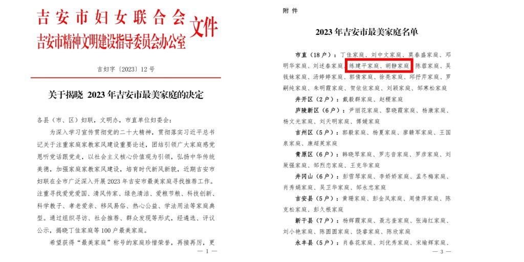 吉安市“最美家庭” 胡静家庭 (供稿:工会 审核:陈苏桂 周 臻 彭晓露)