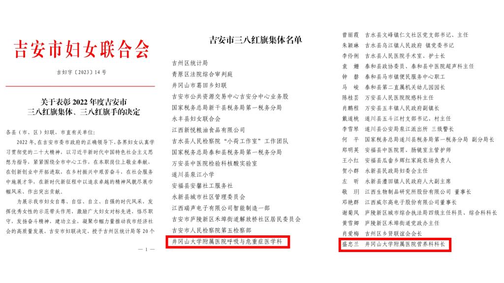 吉安市“三八红旗集体” 井冈山大学附属医院呼吸与危重症医学科
