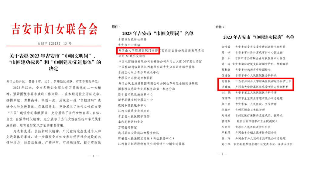 吉安市“巾帼文明岗” 井冈山大学附属医院门诊部