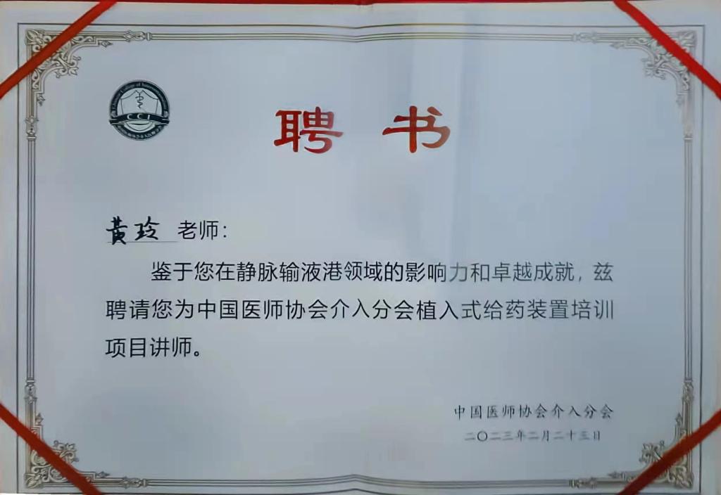 近日,首批中国医师协会介入医师分会植入式给药装置(静脉输液港)培训基地授牌仪式在南京举行,中国科学院滕皋军院士为全国25家医院颁授培训基地牌匾,井冈山大学附属医院为首批入选医院之一。我院介入与血管外科黄玲博士被聘为培训讲师。
