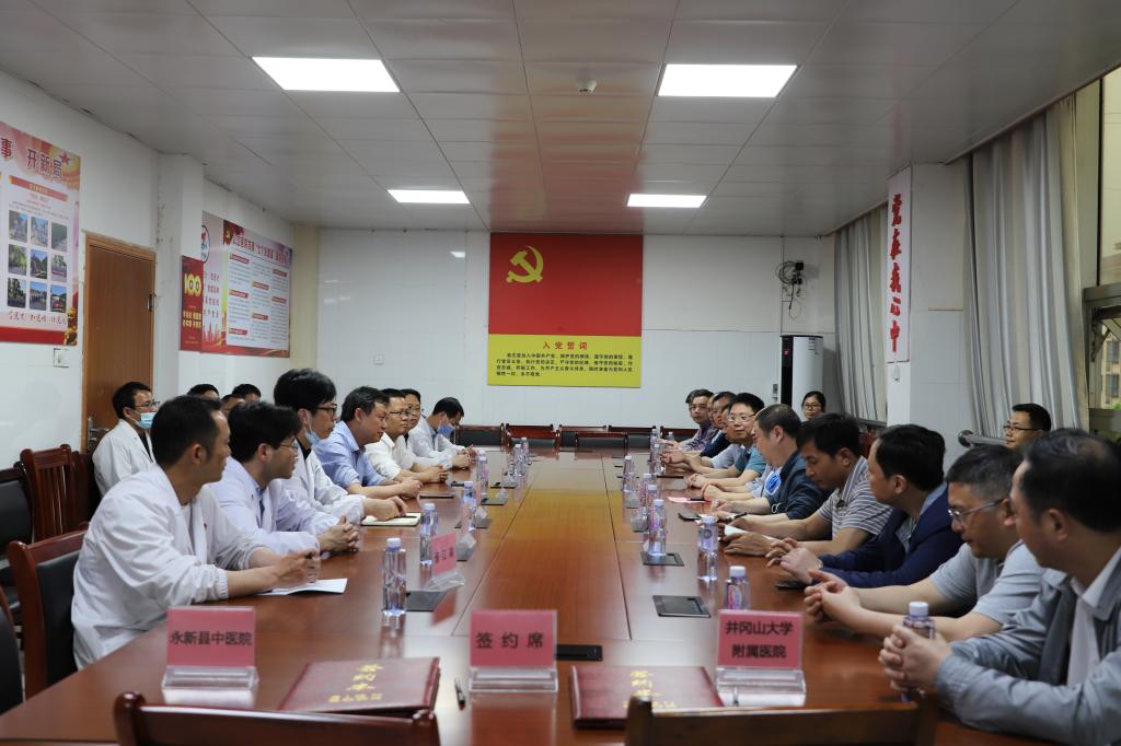 为加强与各县(区、市)医院之间的交流与合作,持续推进卒中中心、胸痛中心、创伤急救中心建设,4月18日,井冈山大学附属医院与永新县人民医院、永新县中医院“三大中心”合作共建网络医院签约仪式在永新县顺利举行。院党委书记肖游章出席讲话,党委委员、副院长韦华璋主持发言,党委委员、副院长刘旭阳出席授课,相关职能科室和临床科室主要负责人随行参加。
