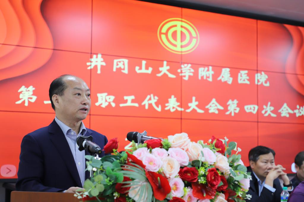 4月23日,井冈山大学附属医院成功召开第三届职工代表大会第四次会议。97名正式代表出席会议,部分列席代表列席会议。学校党委常委、副校长冷明出席会议并讲话,院党委书记肖游章致闭幕词,院党委副书记、院长谭立宇致开幕词并作医院工作报告,院党委副书记郭欢主持会议,院领导刘志勇、伍忠根、韦华璋、黄玲、刘旭阳、陆辉强出席会议。