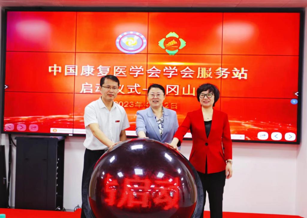 吉安市政府副市长周密,井冈山大学党委常委、副校长冷明,中国康复医学会副会长冯珍共同按下启动球。