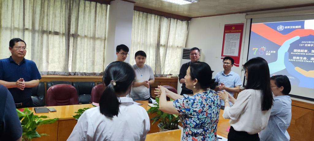 谭立宇院长带领行政后勤人员学习六部洗手法