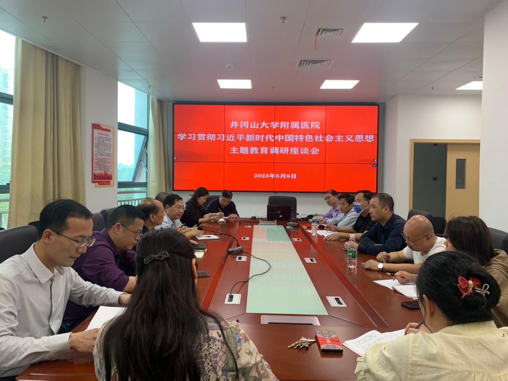 为深入推进学习贯彻习近平新时代中国特色社会主义思想主题教育,5月8日下午,井冈山大学附属医院召开学习贯彻习近平新时代中国特色社会主义主题教育思想调研座谈会。院党委书记肖游章主持,全体在家班子成员、党支部书记代表、党员代表、民主党派代表和群众代表近20人参加。