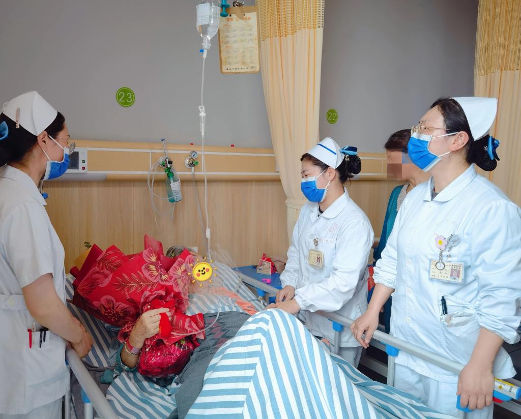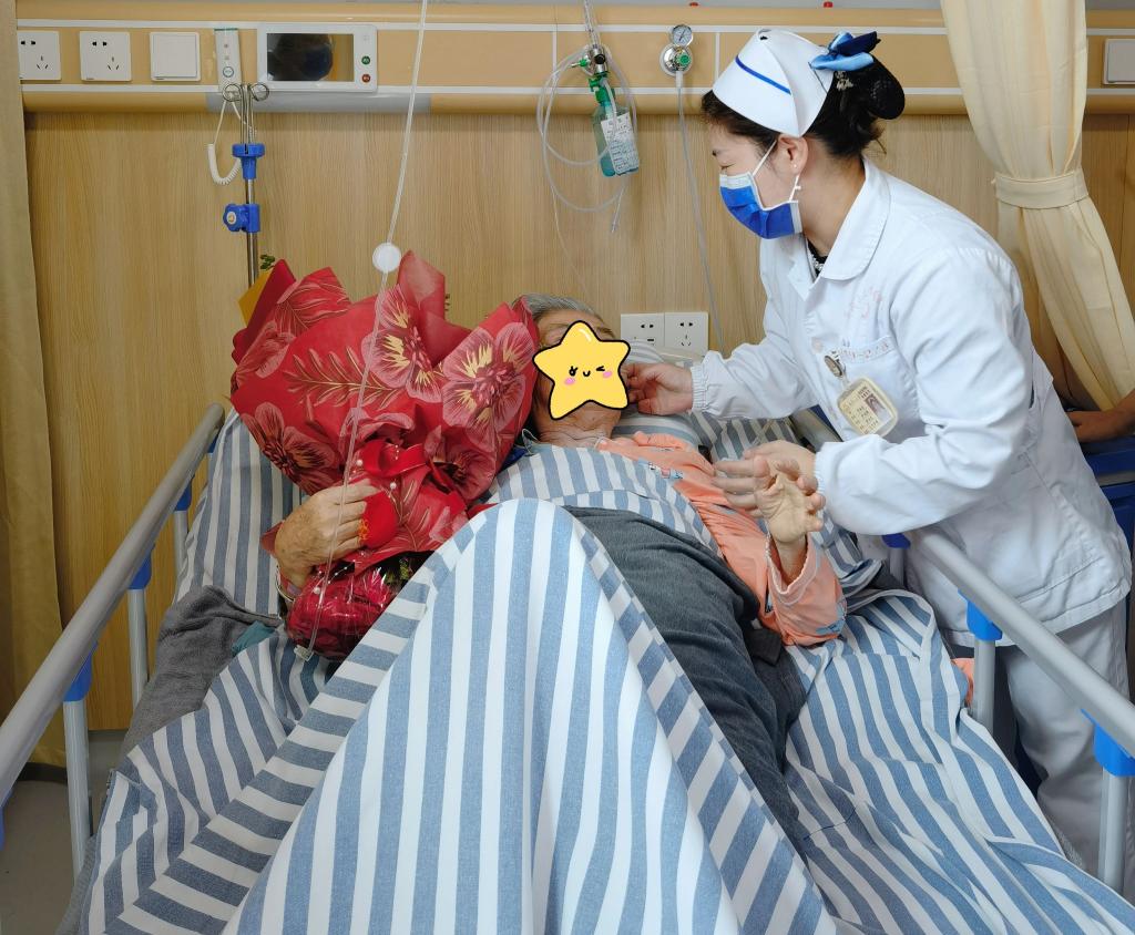 今年三月,79岁的刘奶奶因“胸椎结核”入住井冈山大学附属医院骨科,此后一直积极地和疾病做斗争。老人家待人热情,对待医护人员和蔼可亲,家里人照顾得也很细心。5月5日,是刘奶奶的八十岁生日,在得知这一情况后,护士长罗丽丹第一时间悄悄准备了一场惊喜,在老人家生日的当天准备了一束鲜花,带着护士们送去了诚挚的生日祝福。刘奶奶非常感动,说:“谢谢你们,你们不光工作细心,还有爱心!你们让我更有战胜疾病的信心了,相信有你们如家人般的照顾,我一定能早日出院的!”听到这些话,所有的护士们也都笑了,她们为奶奶的话语而笑,为病房里的温暖而笑!