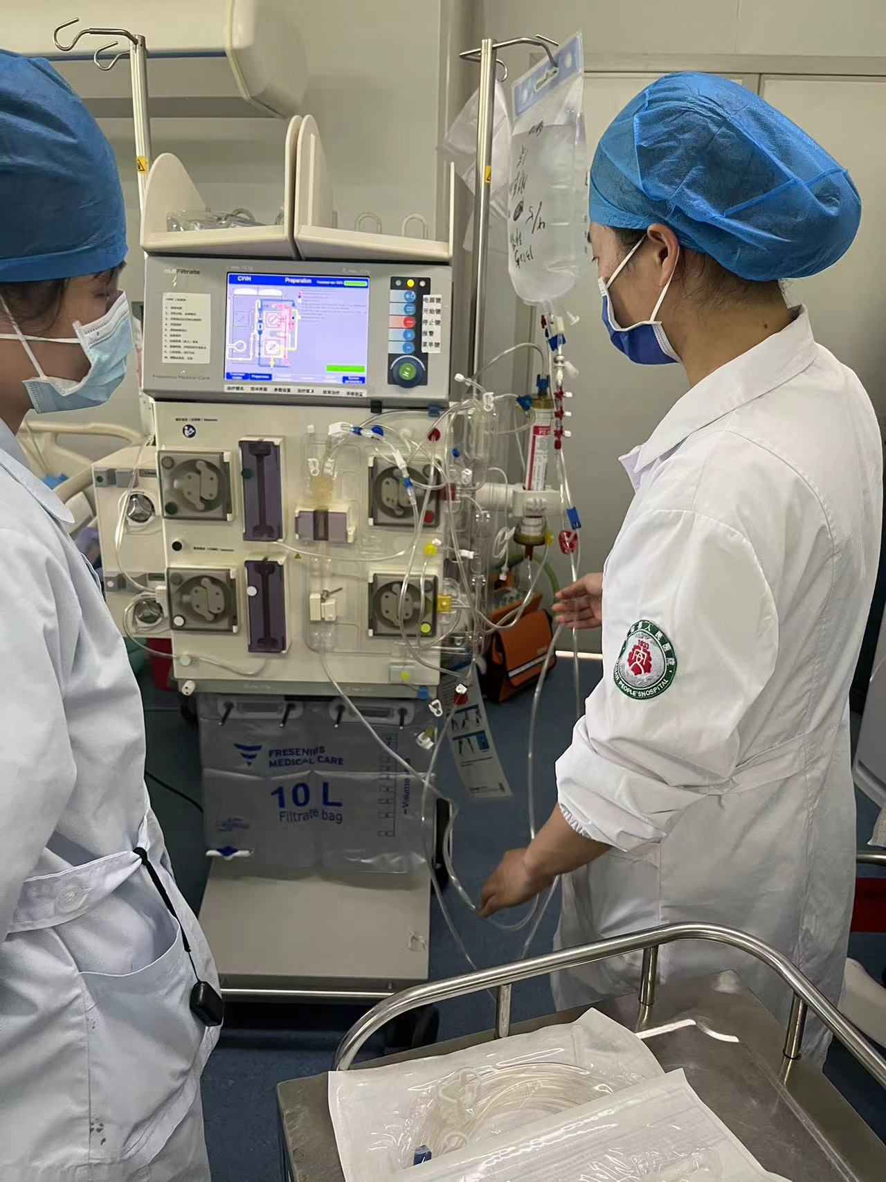 此次下基层帮扶活动的主要内容是在万安县人民医院开展首例血液净化人工肝治疗和血浆置换技术。井大附院重症医学科医护团队了解重症患者病情、查阅病历并进行床边查体。了解患者病情并与家属沟通协商后决定对该患者先进行人工肝治疗再行血浆置换,将进一步改善肝功能损害和加快毒素的清除。