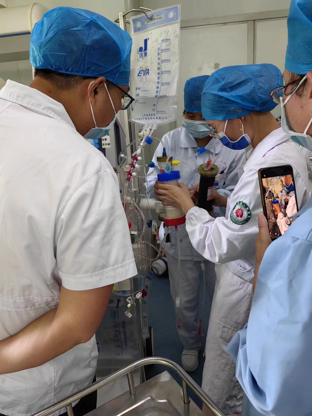 桂琼指导了CVVH下行人工肝治疗的血滤管路安装、血浆分离器+胆红素吸附柱+灌流器的预冲和串联方式,分享了人工肝治疗技术操作的临床细节护理经验。