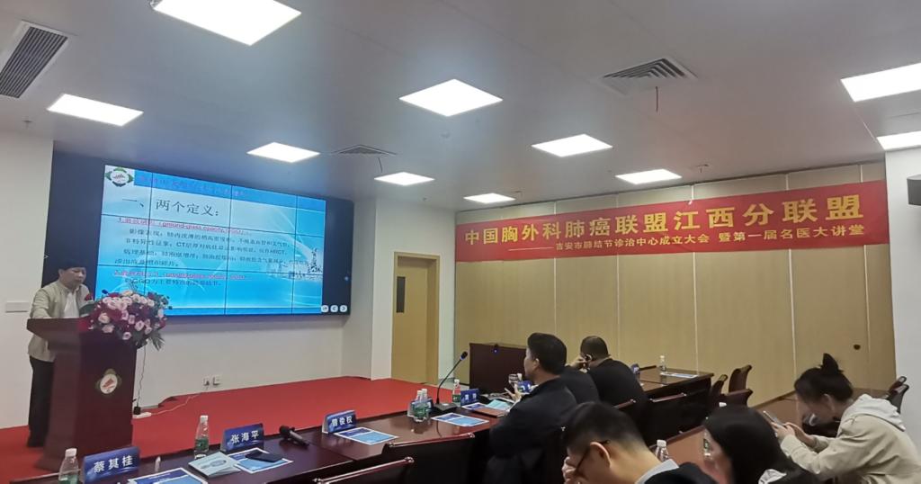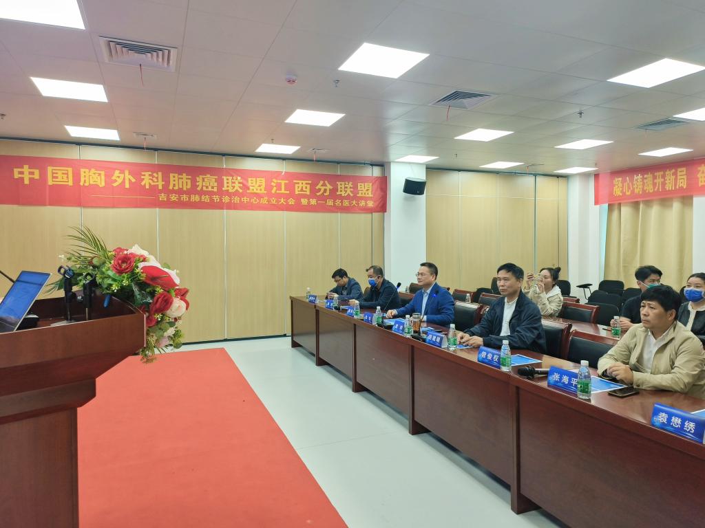 为进一步提高肺癌早期防治,提高基层医疗服务能力,满足群众的健康需求,5月11日下午,中国胸外科肺癌联盟江西分联盟暨吉安市肺结节诊治中心成立大会暨第一届名医大讲堂活动在井冈山大学附属医院新院区顺利举行。