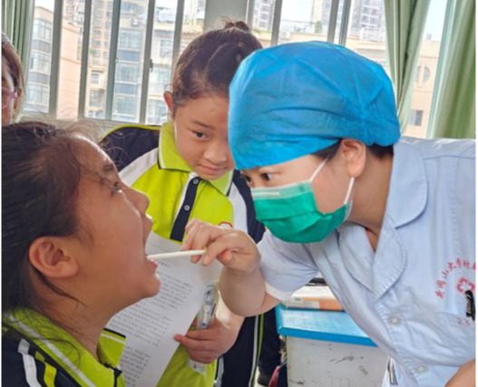 在学校领导、老师及学生的积极配合下,五官支部的医护人员耐心细致地为四年级124名学生进行了口腔科普知识讲座和口腔健康检查,并对体检的结果做了详细记录,提醒养成早晚刷牙的好习惯,并向学生提供健康咨询,给出有针对性的保健意见,普及卫生健康知识,使学生养成良好的卫生习惯,提升个人健康素养。