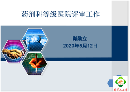 5月12日下午,药剂科在线上举办了科室等级医院评审培训会议,药剂科肖勋立主任主要针对前段时间带队前往南大一附院、江西省人民医院等级医院评审学习的体会,与科室全体药剂人员进行了分享。主要培训内容为药剂科应知应会、安全用药管理、临床药师日常工作、特殊药品(如麻精药品、急救药品等)的管理等。本次培训既浓郁了科室迎评创建的氛围,也切实提高了迎检水平。同时不断强化了药剂科以病人为中心的服务意识,提升了药剂科的整体管理水平,进一步促进了药剂科的学科建设与发展。