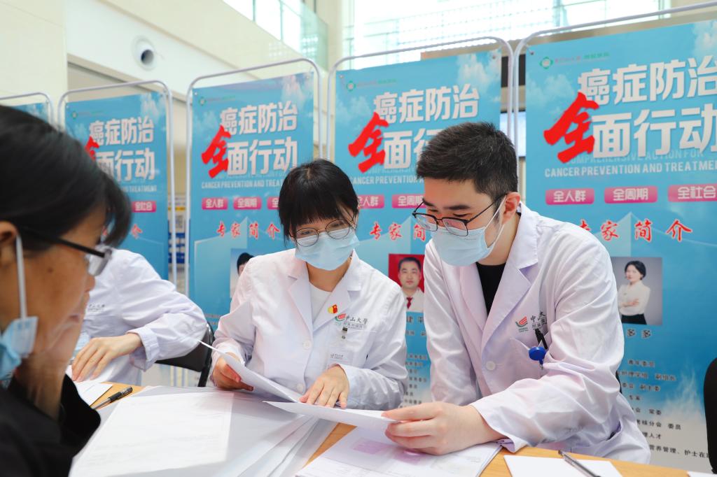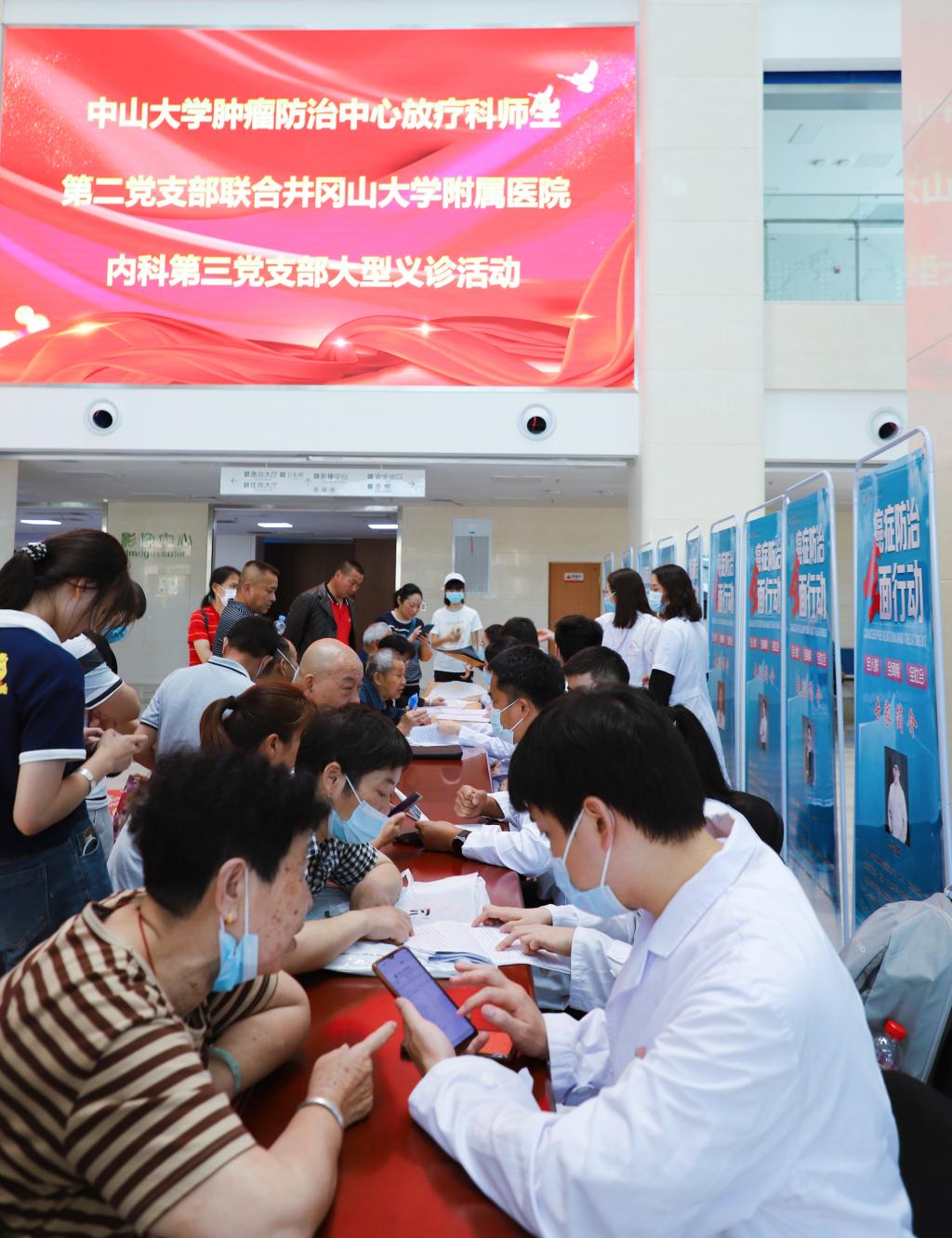 当天上午,中山大学肿瘤防治中心放疗科师生第二党支部专家团队还与井冈山大学附属医院内科第三党支部专家在新院区门诊大厅联合举办“癌症防治、全面行动”大型义诊活动。本次义诊为吉安市民免费提供健康咨询、疾病筛查近200余人次,让居民就近享受到便捷、优质医疗服务的同时,切实提升群众健康素养和自我保健意识。