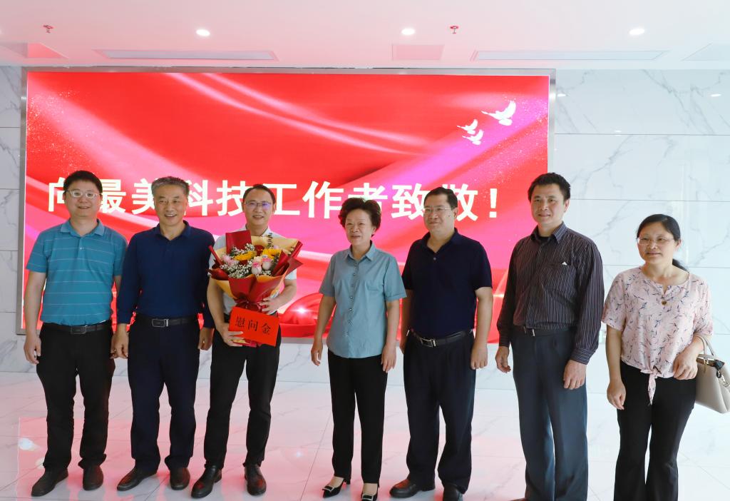 第七个全国科技工作者日即将来临,5月25号,市委副书记肖玉兰来到井冈山大学附属医院新院区,走访慰问吉安市2023度“最美科技工作者”获得者、院党委委员、井冈山大学临床医学研究中心副主任陆辉强。市科协党组成员、二级调研周耀华,市科协党组成员、副主席黄卫秀,医院党委副书记、院长谭立宇,院党委委员、纪委书记刘志勇,院党委委员、副院长刘旭阳等工作人员陪同慰问。