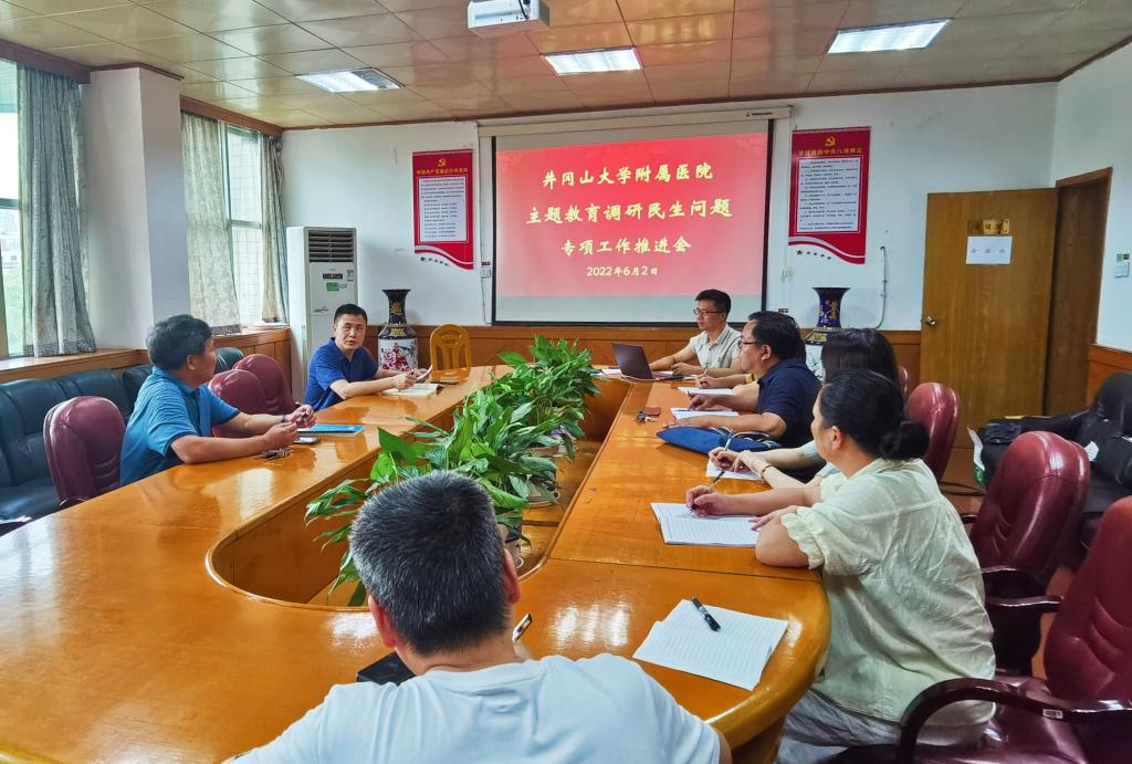 为扎实开展学习贯彻习近平新时代中国特色社会主义思想主题教育,高质量完成学校关于主题教育调研民生问题的具体工作,6月1日,井冈山大学附属医院召开主题教育调研民生问题专项工作推进会。医院纪委书记刘志勇主持,党委委员、副院长伍忠根出席会议,医院发展科、总务科、工会、财务科、门诊部、保卫科、团委负责人列席会议。