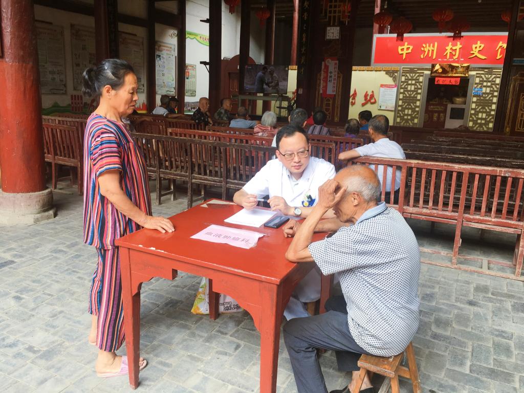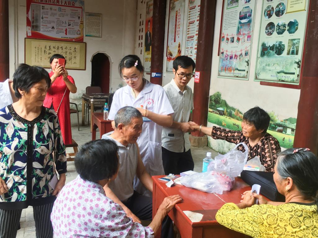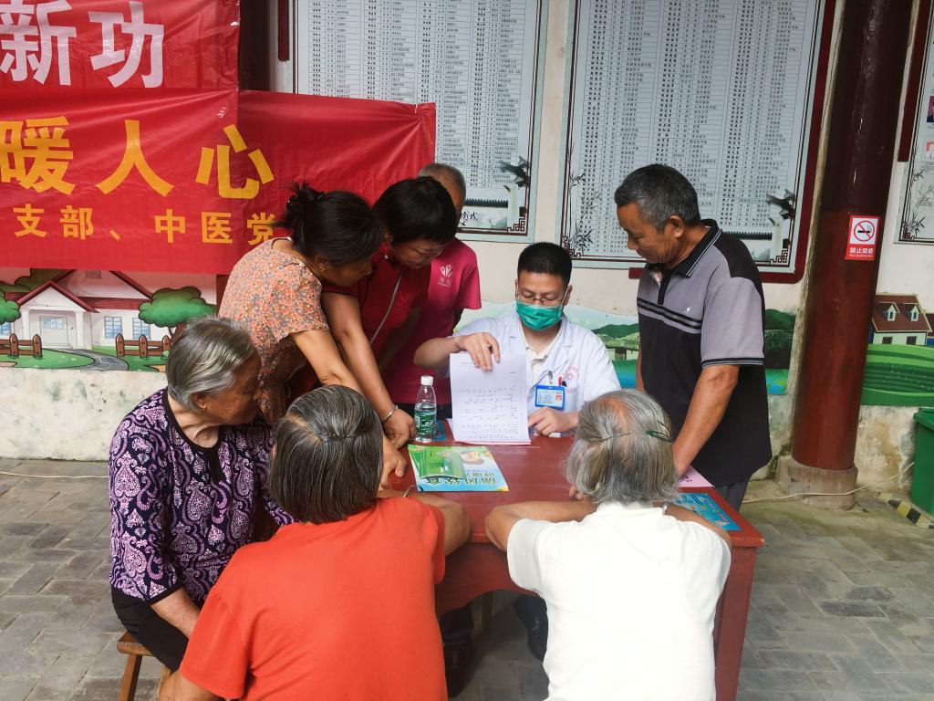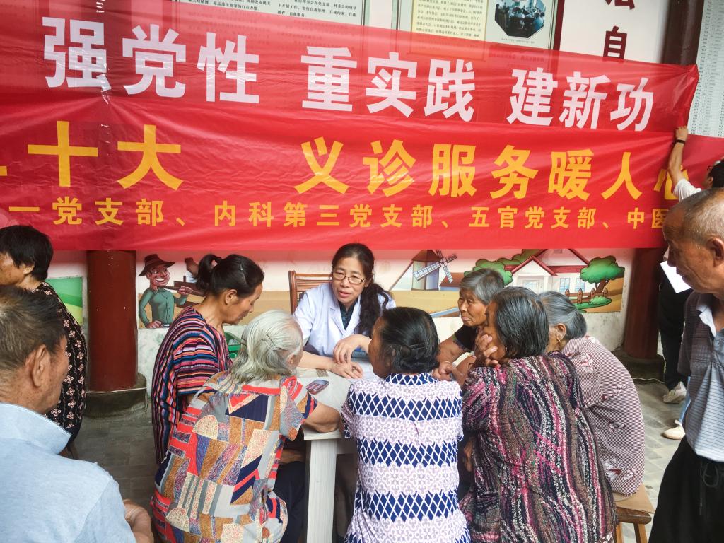 为学习贯彻习近平新时代中国特色社会主义思想,创新形式切实把主题教育开展成果转化到为群众办实事上来,6月3日,井冈山大学附属医院组织多学科专家党员,深入新干县潭丘乡中洲村开展“学思想、强党性、重实践、建新功”主题大型健康义诊活动。机关第一党支部、中医党支部、内科第三党支部、五官党支部一行33人为群众宣传常见病多发病预防保健知识,提供中医健康咨询400余人次,涂氟治疗50余人,彩超检查80余人次,测血压、测血糖200余人次,发放健康宣传资料400余份。