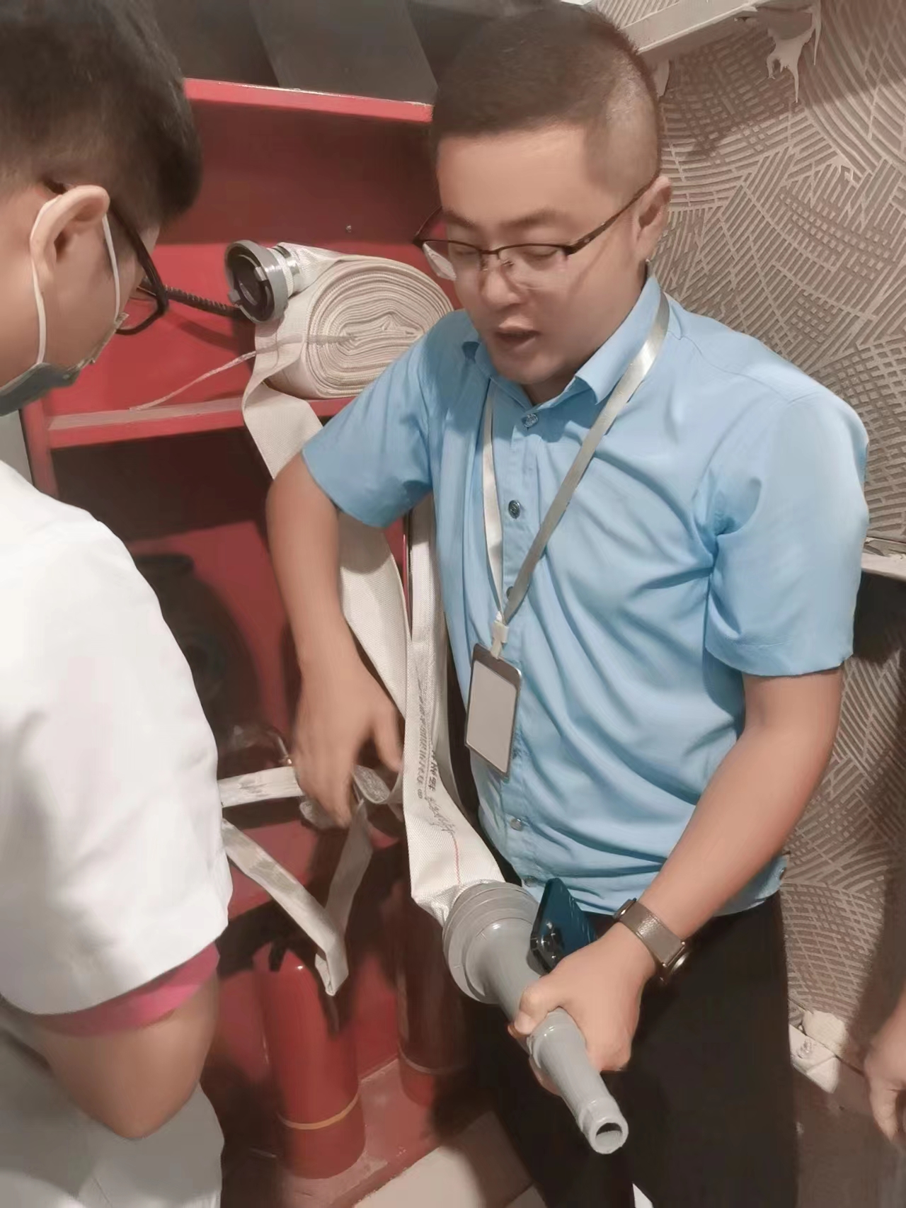 根据医院评审工作要求,为进一步加强医院消防安全管理,增强消防安全防范意识,提高科室职工对突发火情事故的快速反应能力及处置能力,6月9日,井冈山大学附属医院住院部十九病区开展了消防火灾模拟疏散逃生演练,医院保卫科安排专人现场指导。