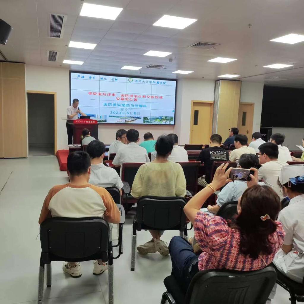 为迎接新一轮等级医院评审,深化“人人都是感控实践者”的医院感染防控理念,提升临床医师感染病例的监测意识和监测水平,熟练应用院感系统对医院感染病例的早发现、早诊断、早报告和早处理,有效预防和控制医院感染不良事件的发生,确保医疗安全。6月8日下午,医院评审办组织召开了第四周期医院感染诊断及暴发处置专题培训会。会议由评审办常务副主任余乐主持,全院120余临床医师参加此次培训。