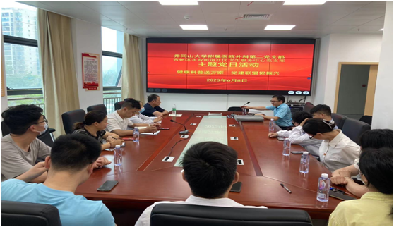 为增强党员党性修养,践行党员初心使命,近日,井冈山大学附属医院外科第二党支部与永叔街道社区卫生服务中心党支部联合开展了“健康科普送万家,党建联建促振兴”主题党日活动。通过召开座谈会及党课学习模式,促进了双方党建与业务工作的双提升。