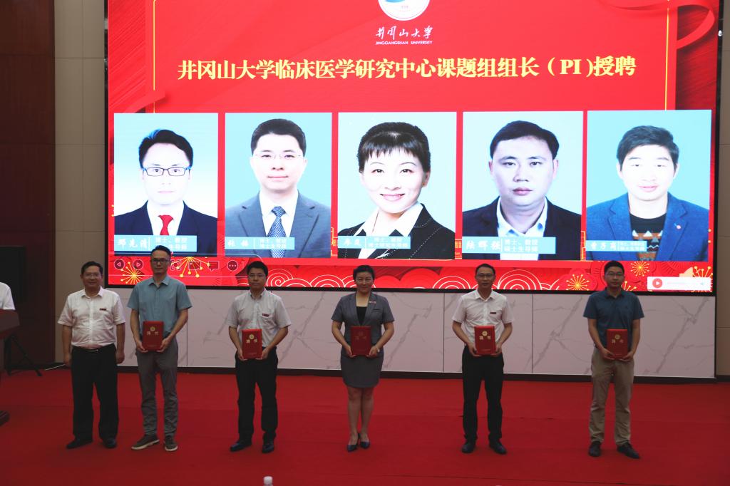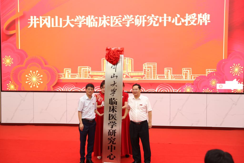 6月13日下午,井冈山大学举行井冈山大学医学研究中心揭牌仪式。党委书记胡春晓,党委副书记、校长罗旭彪,党委常委、副校长肖宜安,党委常委、副校长廖岚,校长助理张赫,吉安市卫健委副主任刘忠开以及学校有关职能部门负责人手印屏幕正式启动仪式,罗旭彪和井冈山大学附属医院院长谭立宇为井冈山大学医学研究中心揭牌,谭立宇为廖岚、张赫、陆辉强、邓先清、曹子岗5名PI课题负责人颁发聘书。廖岚和医学部党委书记康永平分别主持仪式,刘忠开和井冈山大学附属医院党委书记肖游章分别致辞。临床医学研究中心管委会成员、井冈山大学附属医院主要领导及分管领导以及PI课题组及揭榜挂帅课题组所有成员以及院(部)相关成员参加仪式。