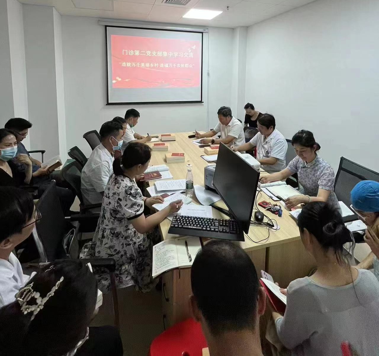 为推动学习贯彻习近平新时代中国特色社会主义思想走深走实,学习优秀案例经验,2023年6月27日下午,在井冈山大学附属医院影像科会议室,门诊第二党支部集中学习交流“造就万千美丽乡村 造福万千农民群众”经验开展集中研讨。院党委委员、副院长伍忠根领学,支部书记谢晓霞主持,支部所有党员参加。