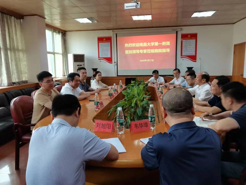 7月17日上午,南昌大学第一附属医院省级区域医疗中心总院长张志红等专家一行4人莅临我院,关于省级区域医疗中心建设共商合作、共谋发展工作座谈会在临床医学院三楼会议室召开。全体院领导、党政办公室、医院发展科、呼吸与危重症医学科、重症监护室及相关科室参加。