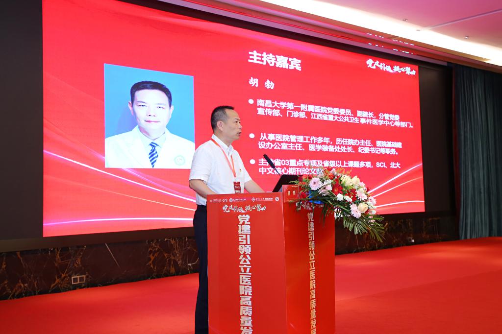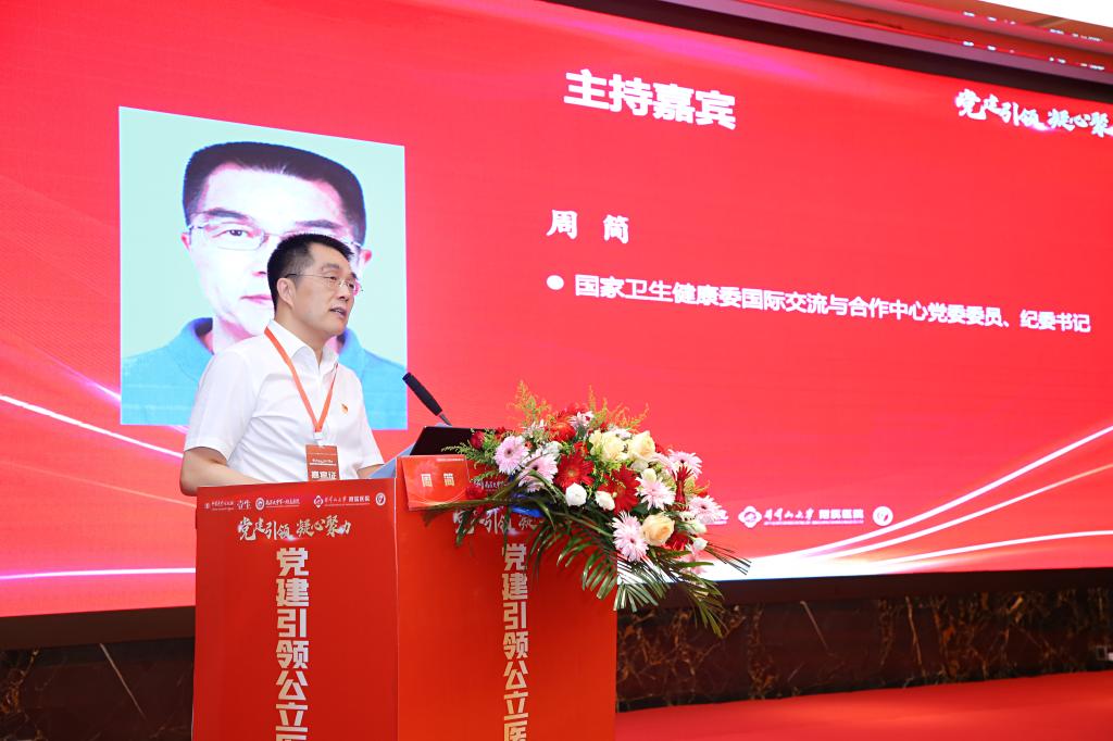 本次会议由国家卫生健康委国际交流与合作中心党委委员、纪委书记周简主持大会开幕式。会议第一环节和第二环节分别由南昌大学第一附属医院副院长胡勃和井冈山大学附属医院党委书记肖游章主持。周简书记介绍了中国医学论坛报社“党建引领公立医院高质量发展主题宣传与案例征集活动”。