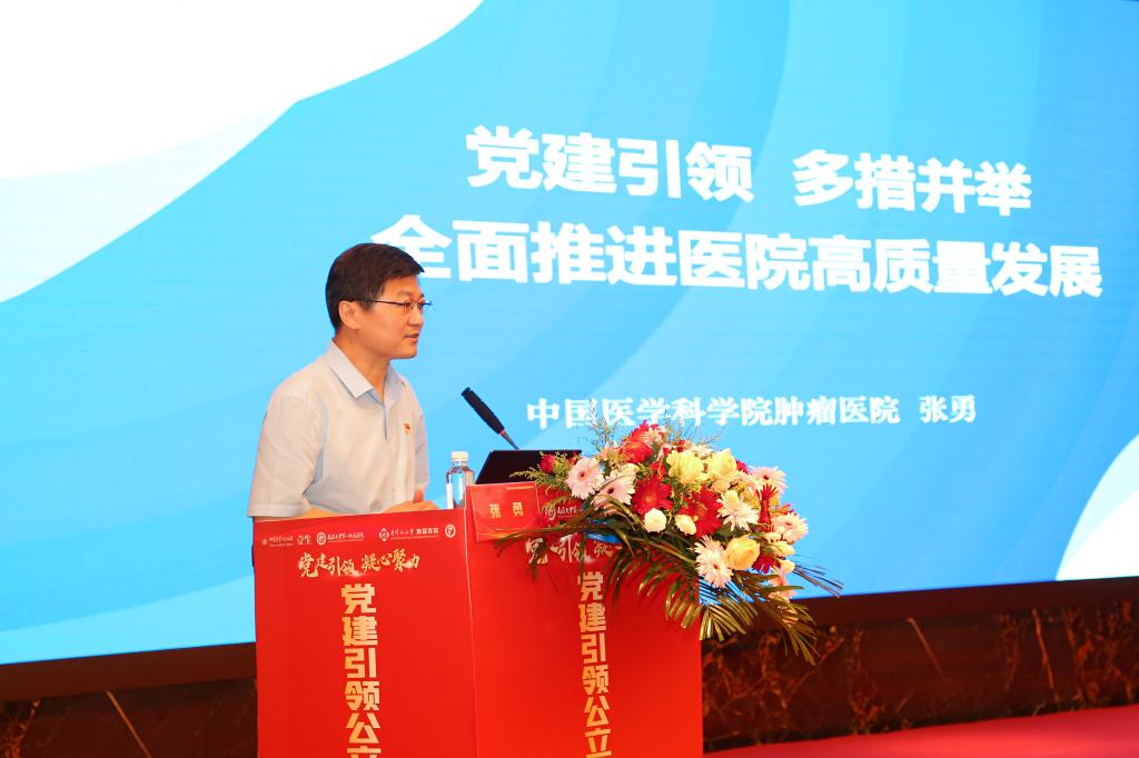 国家癌症中心/中国医学科学院肿瘤医院党委书记张勇分享了《党建引领 多措并举,全面推进医院高质量发展》相关实践经验。持续推进中心和医院的高质量发展,要做到加强党建引领,严格质量管理,推进学科建设和人才支撑,鼓励科研创新。在高质量党建的引领下,中心和医院在专科建设、医疗质量、人才培养、科研创新、新药研发等多个方面成绩斐然,彰显了作为国家医学中心和国家级肿瘤防治中心的行业领先地位。