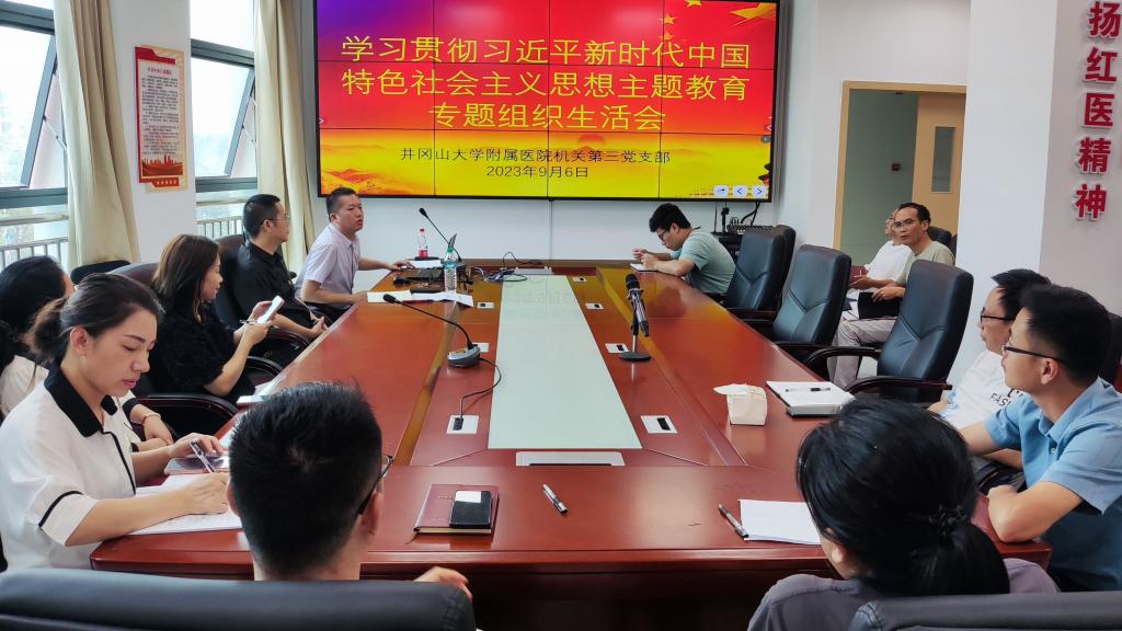 9月6日下午,机关第三党支部在全科楼二楼党员活动室召开学习贯彻习近平新时代中国特色社会主义思想主题教育专题组织生活会。院党委副书记、党委委员郭欢到会指导,支部全体党员参加会议。会议由支部书记余乐主持。
