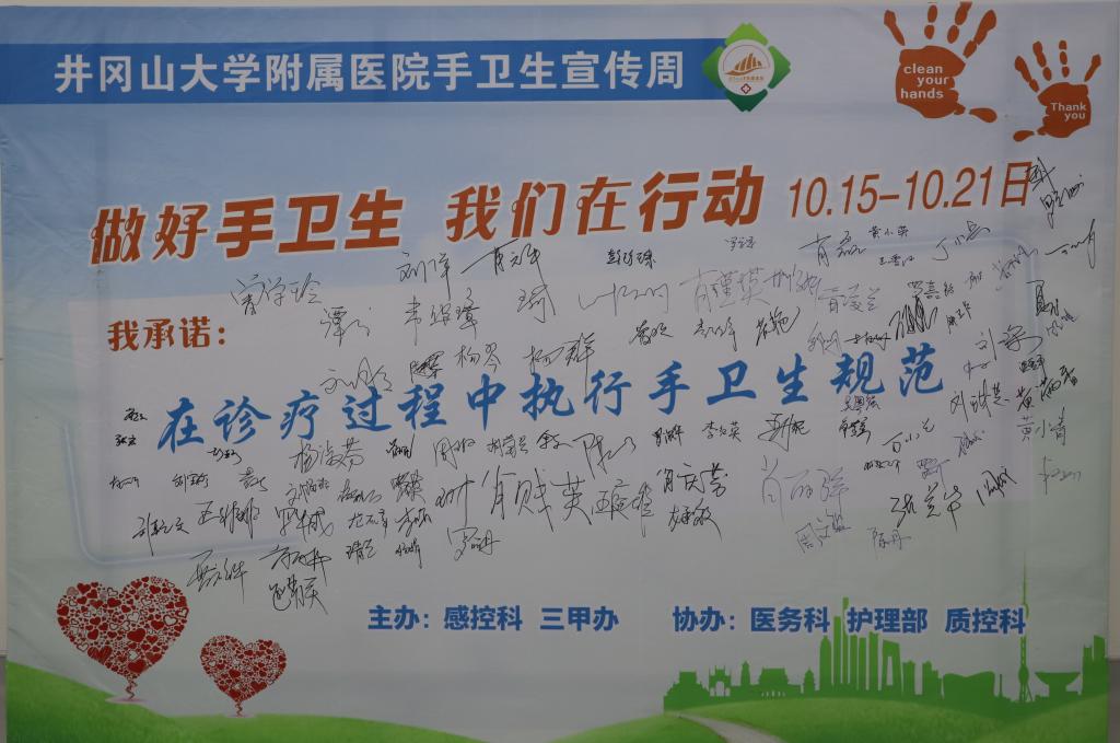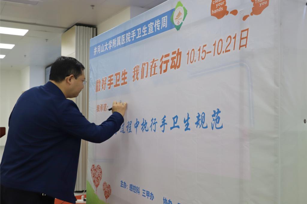 活动现场进行了手卫生承诺签名活动,谭立宇带头签名,承诺医务人员在诊疗过程中,执行手卫生规范。