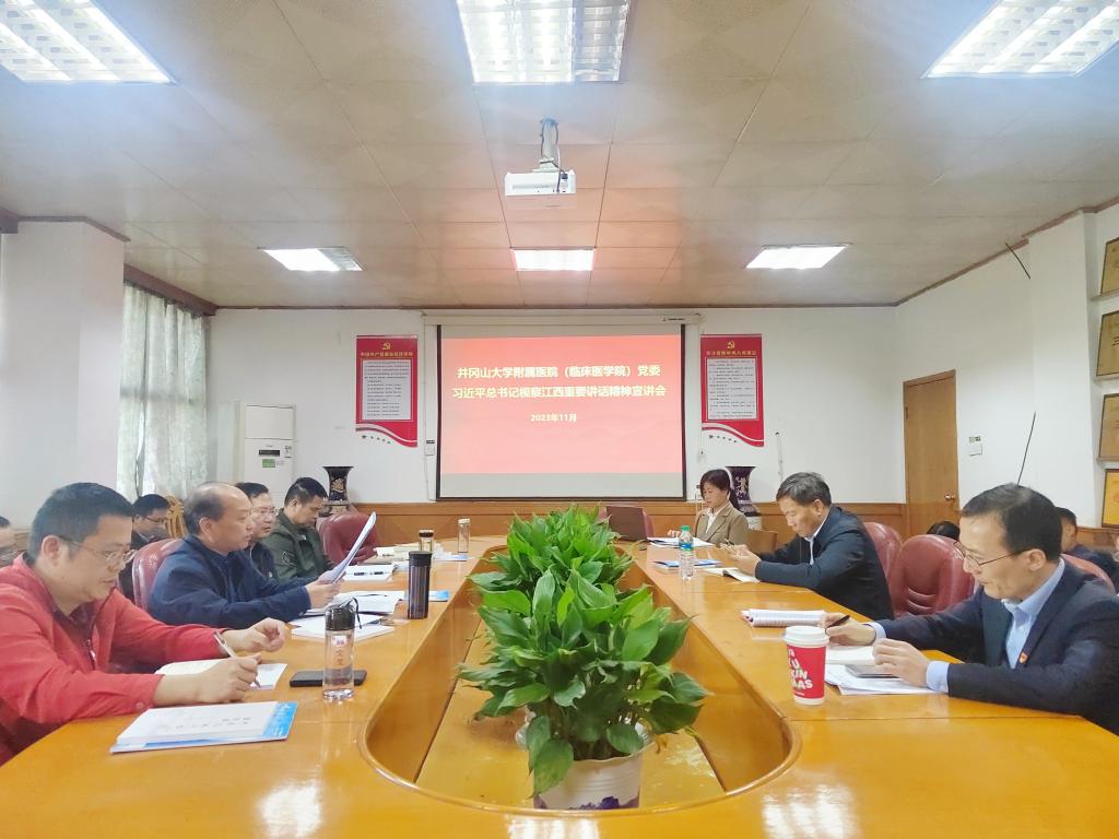 11月23日下午,井冈山大学附属医院党委理论学习中心组召开11月集中学习(扩大)会暨习近平总书记视察江西重要讲话精神宣讲会,就习近平总书记视察江西重要讲话精神进行了学习宣讲,并学习了习近平总书记关于推动高质量发展的重要论述,传达了省卫健委有关集中整治视频会议精神。院党委书记肖游章主持并讲话,院党委理论学习中心组成员及各党(总)支部书记参加。院党委委员、纪委书记刘志勇,机关第一党支部书记罗华威、机关第二党支部书记周剑琴依次作了重点发言。