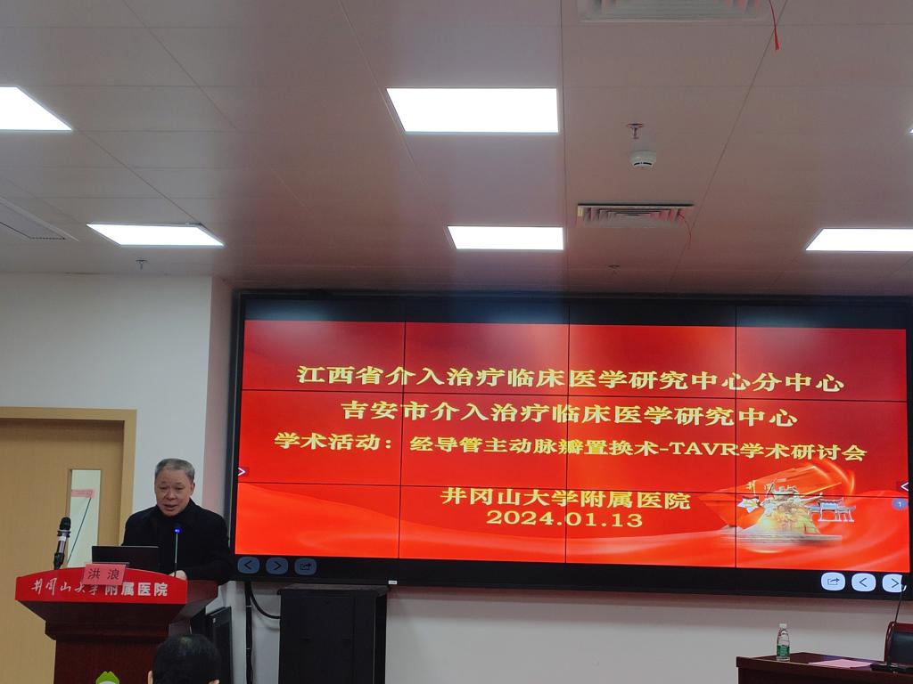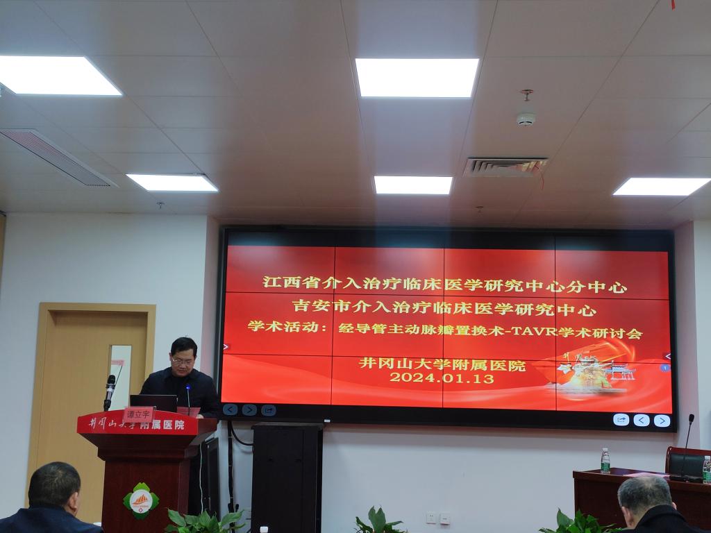 1月13日,由井冈山大学附属医院主办的吉安市介入治疗临床医学中心学术活动“经导管主动脉瓣置换术-TAVR学术研讨会”在新院区全科楼二楼顺利召开。江西省人民医院心内科主任、江西省心血管病医院院长洪浪,井冈山大学附属医院党委副书记、院长谭立宇致辞。来自吉安地区从事相关专业的医务人员共40余人参与了此次学术活动。