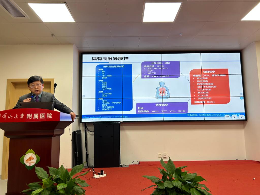 为加强肿瘤罕见疾病管理,提高肿瘤罕见疾病诊治水平,2024年1月19日,江西省罕见病质控中心肿瘤罕见疾病吉安站宣讲会在井冈山大学附属医院新院区二楼学术厅顺利召开。此次会议也是江西省恶性肿瘤临床医学研究中心吉安分中心、吉安市恶性肿瘤临床医学研究中心系列巡讲活动。医院党委委员、副院长刘旭阳出席并致辞,肿瘤放疗科主任练建平博士主持。