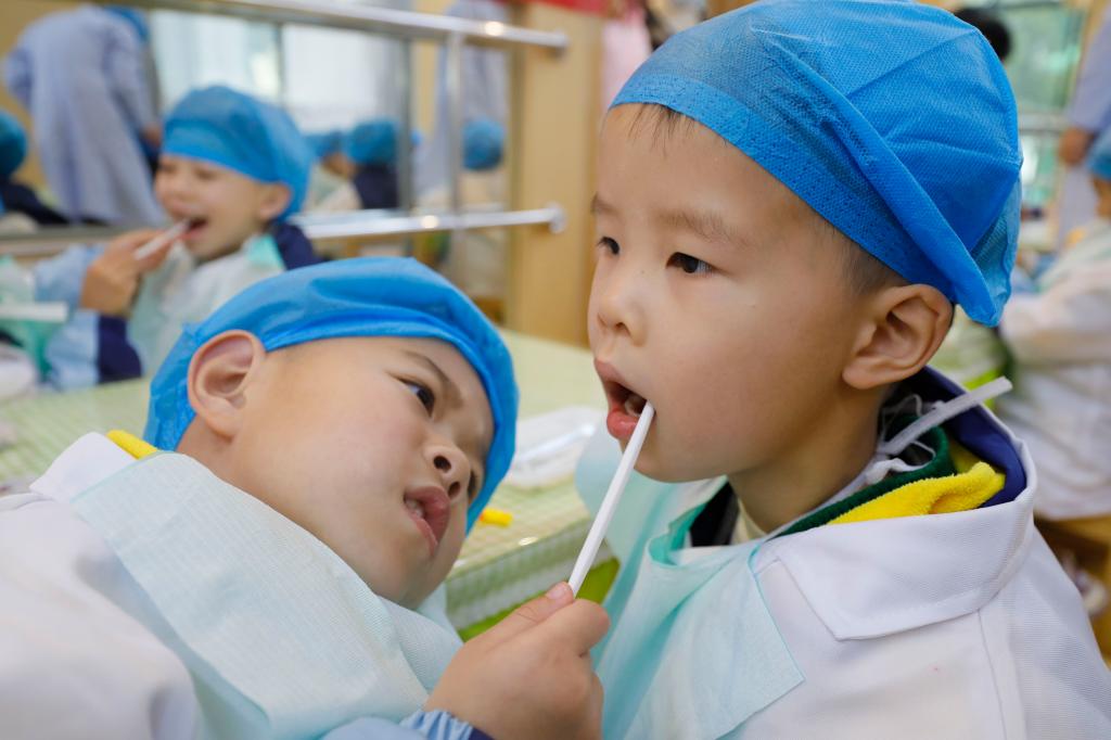 通过这样的角色扮演方式,“小小牙医”们明白了预防口腔疾病的主要性,纷纷表示今后要每天坚持正确地刷牙,还要回去告诉爸爸妈妈刷牙的重要性。