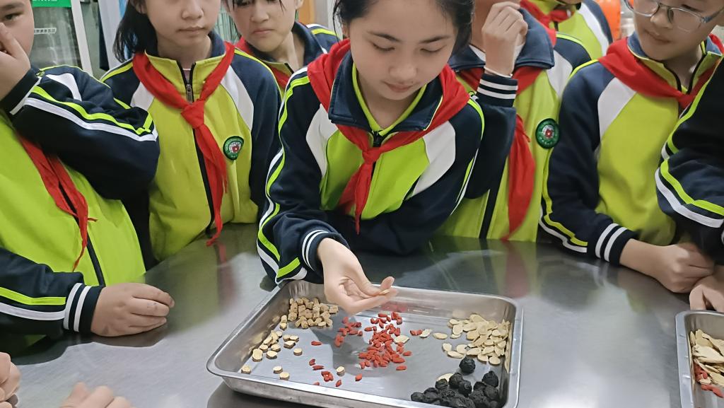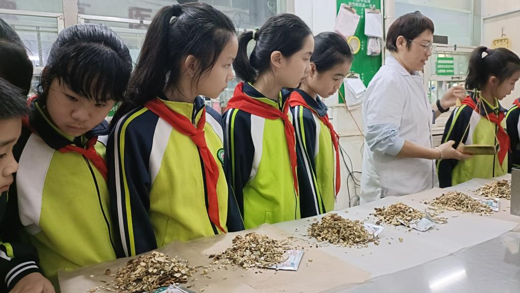 活动设置了“辨识中药”的互动环节,药剂科青年药师吴建程为同学们准备了几味常见中草药样本,从中药材的来源、分类、药用部位、五味辨识等方面,为孩子们带来了一堂生动有趣的中药知识科普课,孩子们听得津津有味,不时提问,不一会儿工夫,便掌握了一些常见的中药辨认知识。