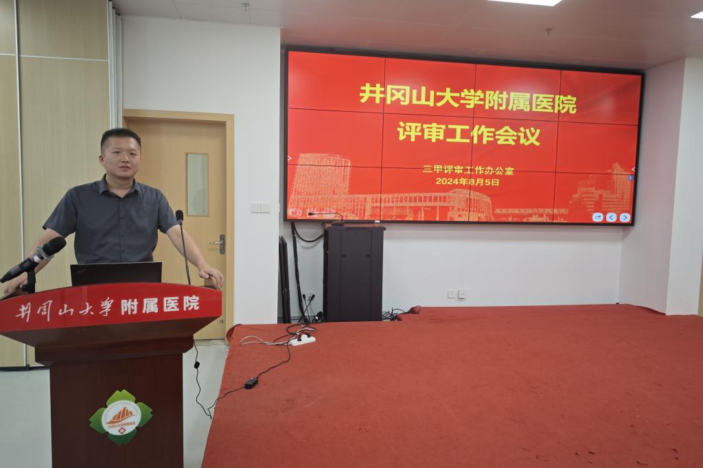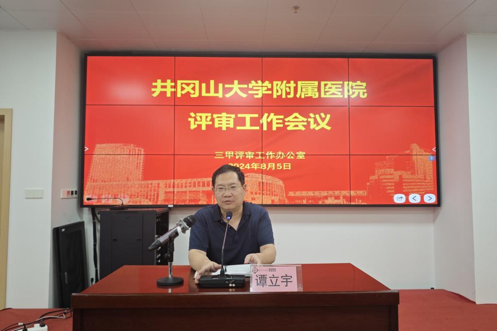 为扎实推进三甲评审工作,确保三甲评审各个环节顺利开展,8月5日下午,井冈山大学附属医院在新院区全科楼二楼学术报告厅组织召开职能科室三甲评审工作会议。全体领导班子成员、职能科室中层干部以及内审员共70余人参会。会议由院党委委员、副院长、评审办主任韦华璋主持。