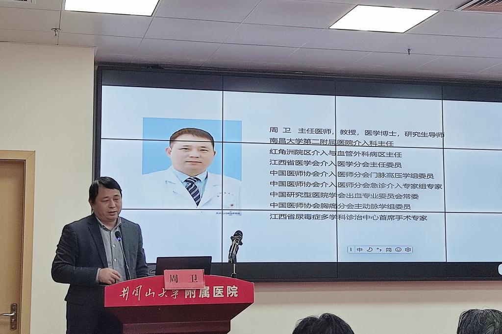 ▲江西省医学会介入医学分会主任委员周卫教授开幕式致辞