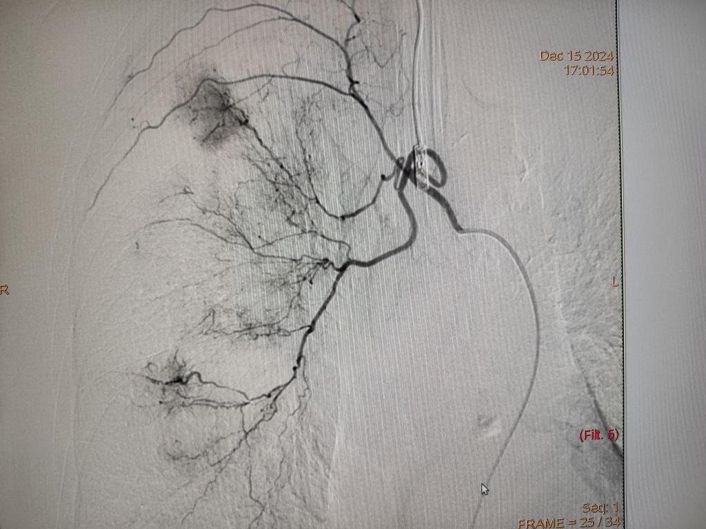 黄玲教授团队就咯血的介入治疗进行了讲解及相关手术直播演示,让参会者更加直观地了解了支气管动脉栓塞术的操作过程和技术要点。