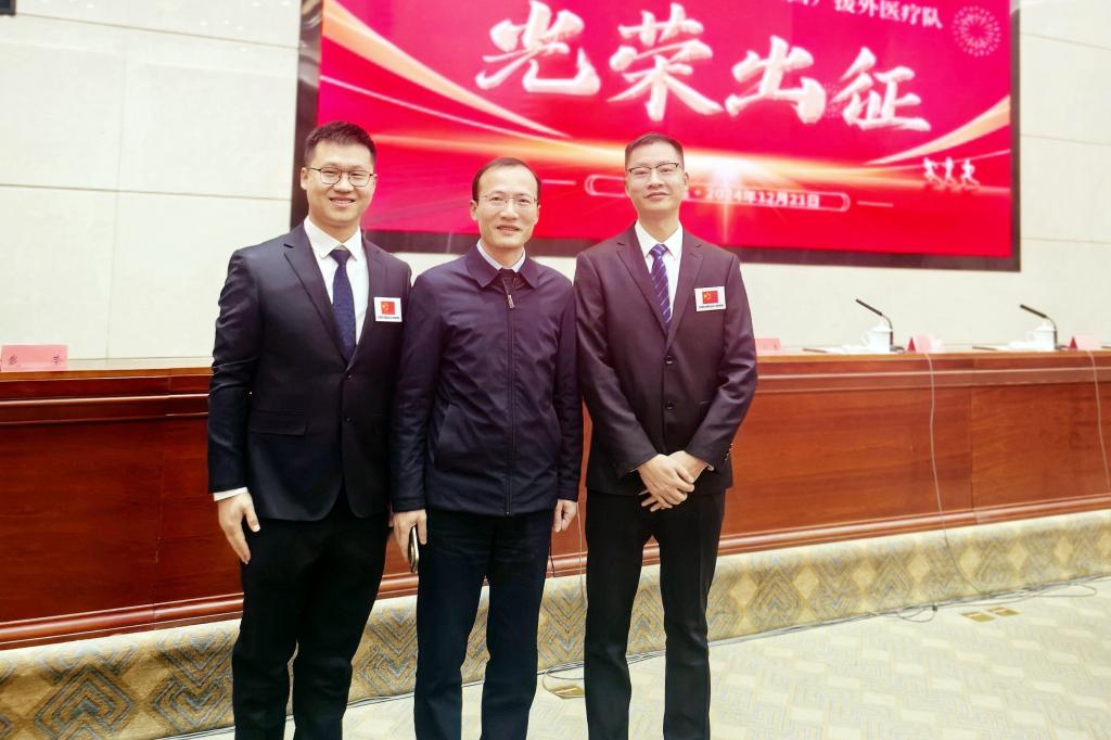 贺旭文、刘传镇两位队员对医院领导以及家人的关心表示衷心的感谢。并表示作为医院选派的援外队员,深知任务的艰巨性。在接下来的一年里,将秉承习近平总书记提出的援外医疗队精神,不畏艰苦、甘于奉献、救死扶伤、大爱无疆,以高度的责任感和专业精神,全力以赴做好每一项工作。(文图:康骞 审核:李年秀 周臻 彭晓露)