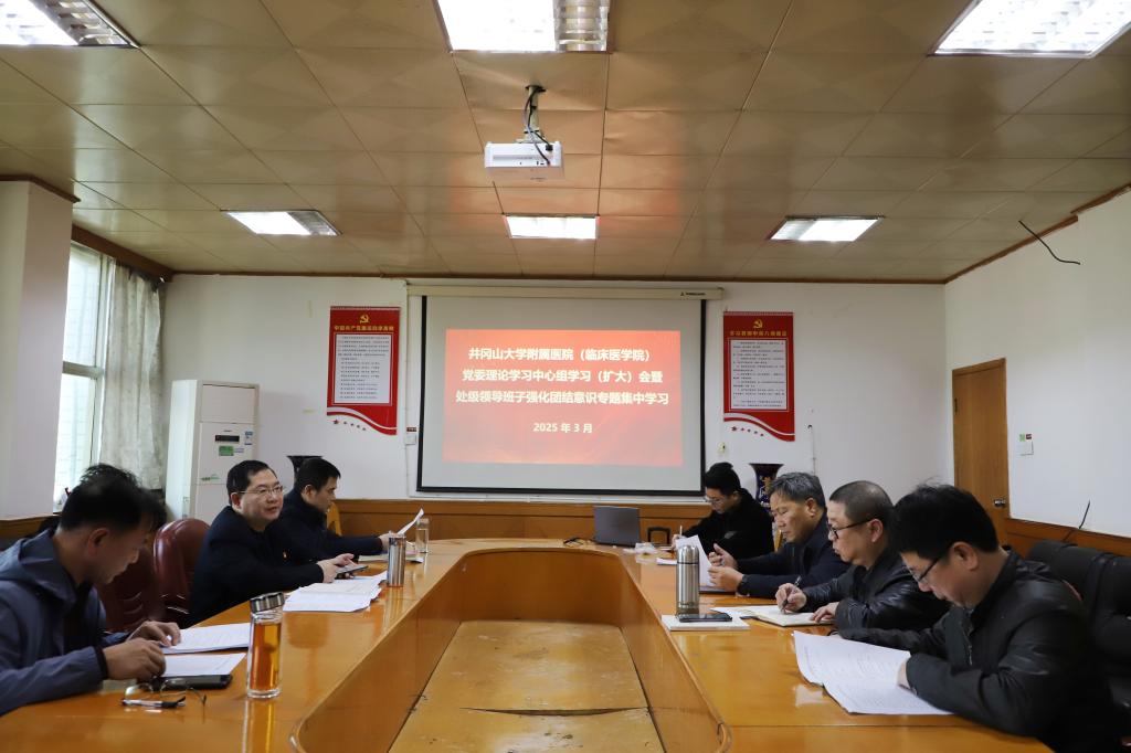 3月18日,井冈山大学附属医院(临床医学院)召开2025年3月党委理论学习中心组学习会暨处级领导班子强化团结意识专题集中学习会。院党委副书记、院长谭立宇,院党委副书记李明敏和院党委委员、纪委书记刘志勇分别领学,院党委理论学习中心组成员参加并展开交流研讨。