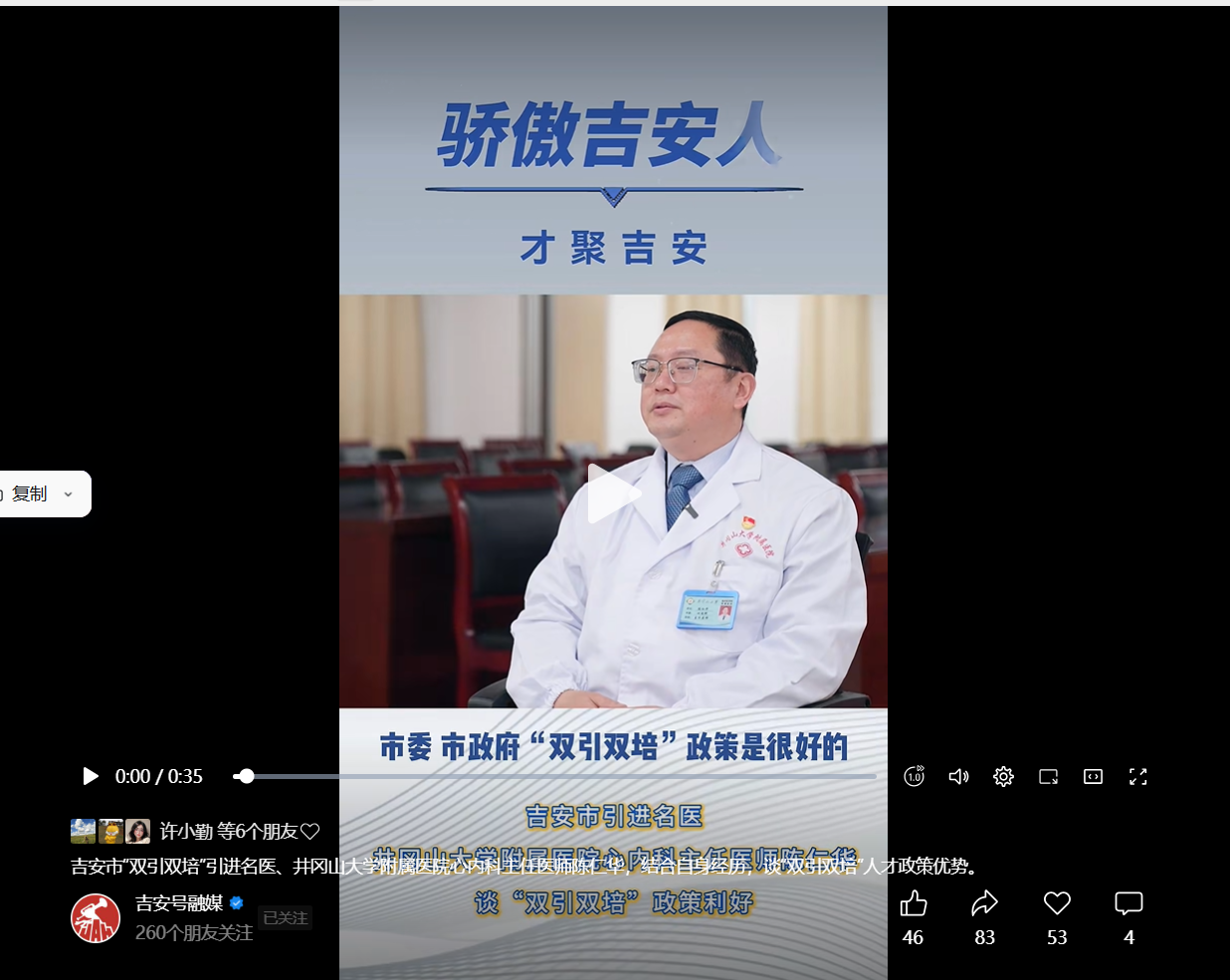 【吉安号融媒】吉安市”双引双培”写进名医、井冈山大学附属医院心内科主任医师陈仁华,结合自身经历,谈”双引双培”人才政策优势。