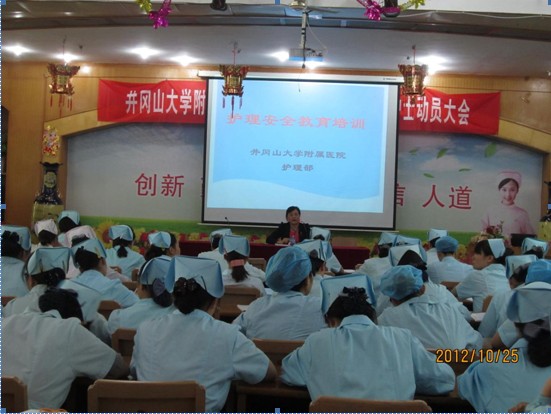 为了落实《三级综合医院评审标准实施细则(2010年版)》,防范与减少患者意外事件发生,确保护理安全,护理部于2012年10月25日在八楼会议室成功举办护理安全教育培训班,分管领导罗美华书记及全体护士参加。