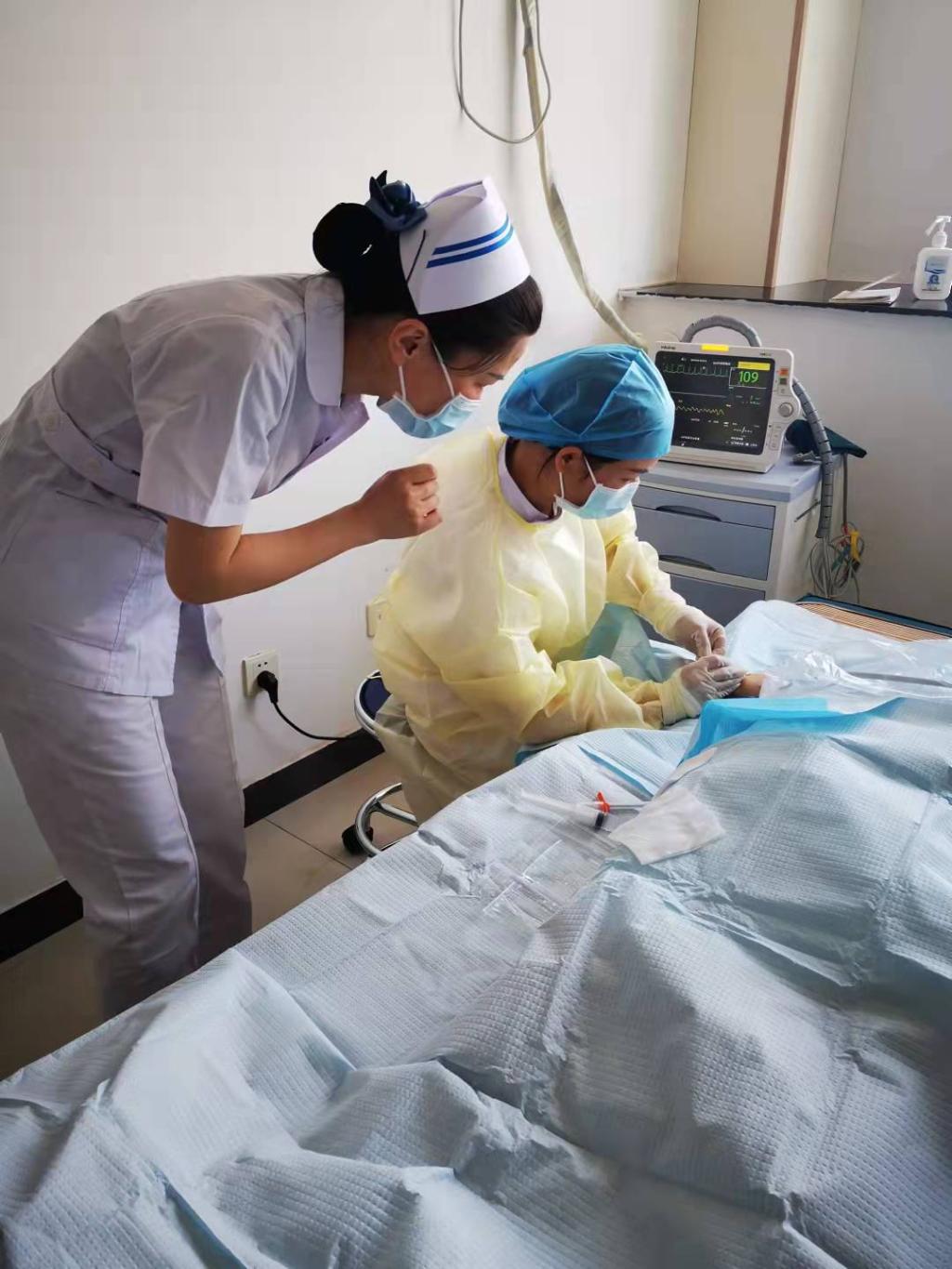 大内科科护士长及静疗专科护士刘红与肿瘤科张护士长和PICC专科护士就腔内心电定位辅助超声引导+塞丁格置入PICC技术应用于危重症患者静脉通路的开展提出了建设性指导意见,对疑难患者置管及置管并发症处理进行深入的互动交流学习,并现场指导进行PICC置管操作。并以此为契机建立长期合作模式,对今后出现的临床问题及时给予帮助,提出干预措施并有效解决问题。