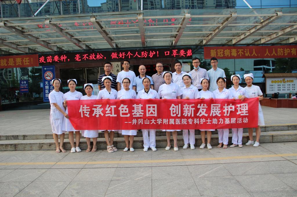 在盛夏金秋的9月2日,井冈山大学附属医院邹亦平副院长和护理部陈小英主任带领慢病护理联盟、专科护士志愿团队前往吉水县人民医院开展以“我为群众办实事”“传承红色基因,创新发展护理”为主题的专科护士助力基层活动。此次活动团队分别由静疗专科、伤口造口专科、糖尿病专科及重症监护专科护士组成。