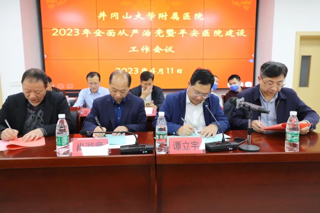 肖游章、谭立宇先后与班子成员、科室负责人签订2023年全面从严治党责任书、平安建设责任书、消防安全责任书,其他院领导与分管科室负责人、纪委书记与支部纪检委员签订全面从严治党责任书。(文/图:周 臻 审核:陈 娟 彭晓露)