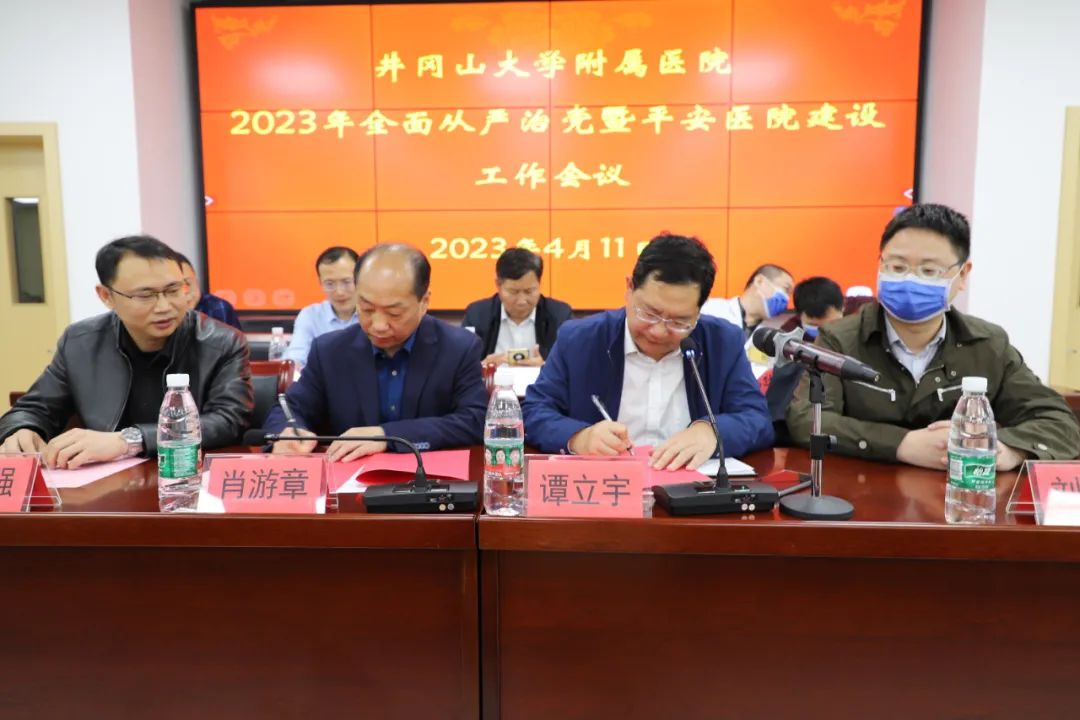 为深入学习贯彻党的二十大精神,认真贯彻落实二十届中央纪委二次全会精神,对标中央及省委全面从严治党战略部署,认清形势,直面问题,刀刃向内,守好底线,营造风清气正的政治生态和良好的发展环境,为实现医院“十四五”目标任务提供有力保障。4月11日,井冈山大学附属医院召开全面从严治党暨平安医院建设工作会议。院党委书记肖游章,党委副书记、院长谭立宇,党委副书记郭欢,纪委书记刘志勇,党委委员、副院长伍忠根、韦华璋、黄玲、刘旭阳,党委委员、临床研究中心副主任陆辉强以及各党支部书记、中层干部参加会议。