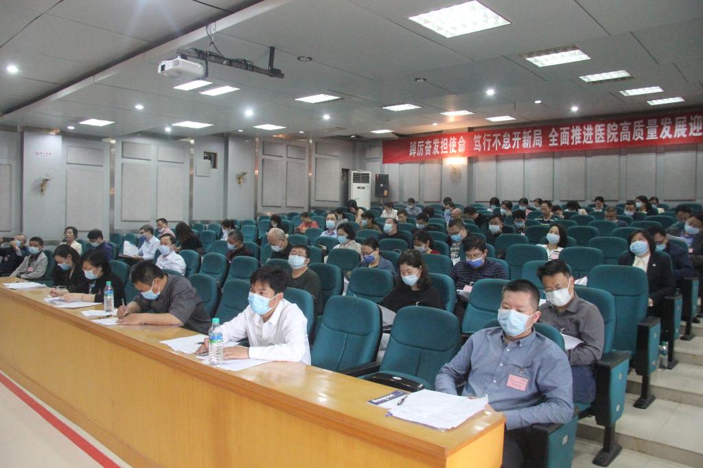 谭立宇在工作报告中回顾了医院2021年的工作。2021年是“十四五”开局之年,是中国共产党成立100周年,也是医院深化改革、实现跨越发展的新起点。一年来,医院坚持以习近平新时代中国特色社会主义思想为指导,全面贯彻党的十九大和十九届各中全会精神,在校党委和上级组织的正确领导下,在推动公立医院高质量发展的总体要求下,围绕建设省级区域医疗中心和疫情防控常态化的工作部署,全院上下目标同向,工作同步,落实同力,出色地完成了疫情防控、项目建设、医疗服务、科研教学等各项工作任务,医院发展步入快车道。