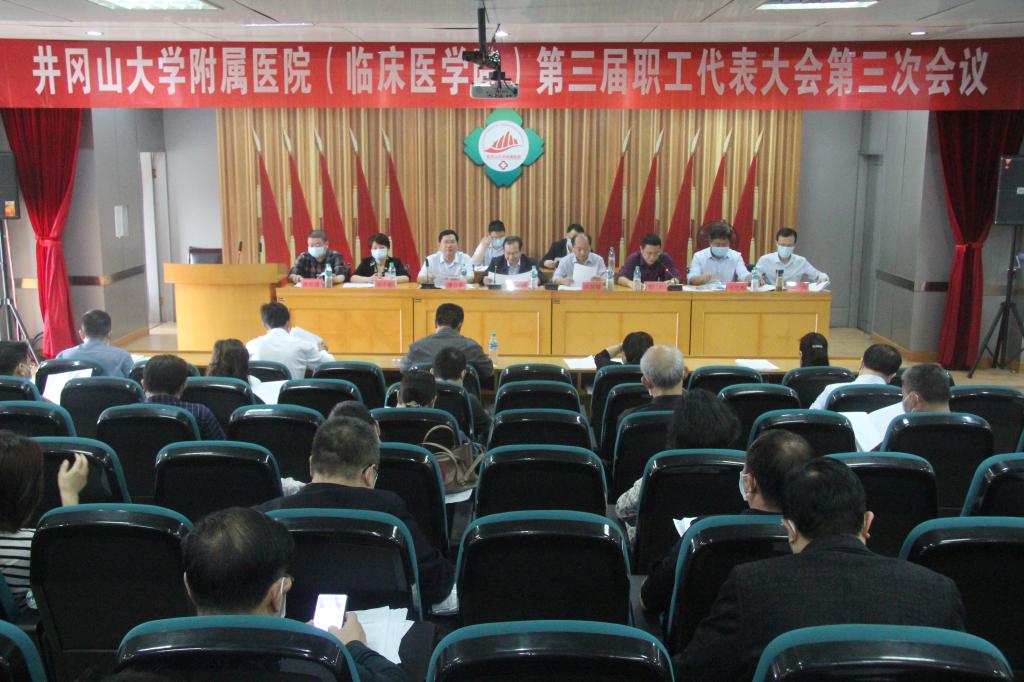 会议审议通过了谭立宇代表医院所作的《凝心聚力启新篇,笃行不怠开新局,以内涵建设引领医院高质量发展》工作报告,听取了提案工作报告,审议通过了医院财务工作报告、工会工作报告、医院工会经费收支情况审查报告(书面)、《井冈山大学附属医院(临床医学院)“十四五”发展规划(2021-2025)》(书面)、《井冈山大学附属医院(临床医学院)教学工作量核算及有关津贴发放方案》(试行)、《井冈山大学附属医院高质量科研业绩激励试行办法》(试行)、《井冈山大学附属医院聘任专业技术职务办法》(试行)。