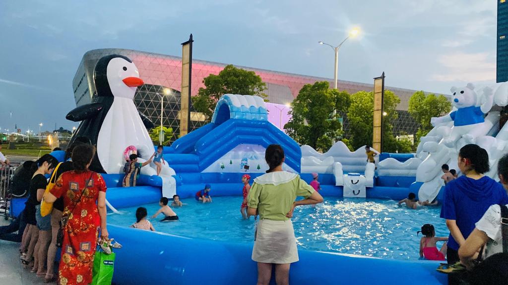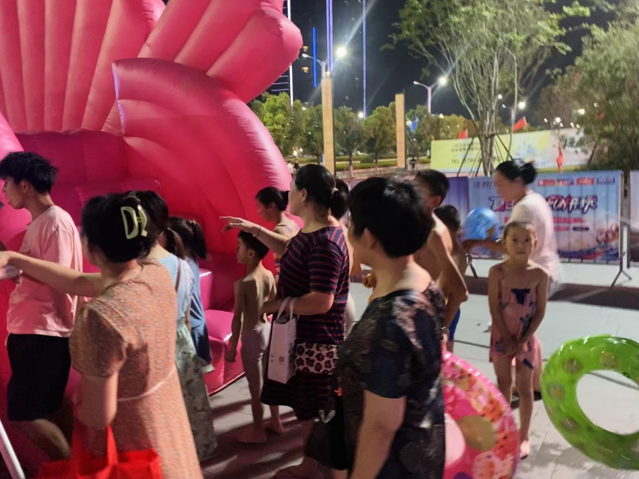 活动开始前,工会同事组织参加活动人员有序集合签到,大家换上了游泳装备,带上泳圈,脸上洋溢着开心的笑容。晚上七点活动正式开始,各职工纷纷带小孩进入游玩场地,小朋友们按捺不住激动的心情下水嬉戏,现场呈现一片欢乐沸腾的景象。