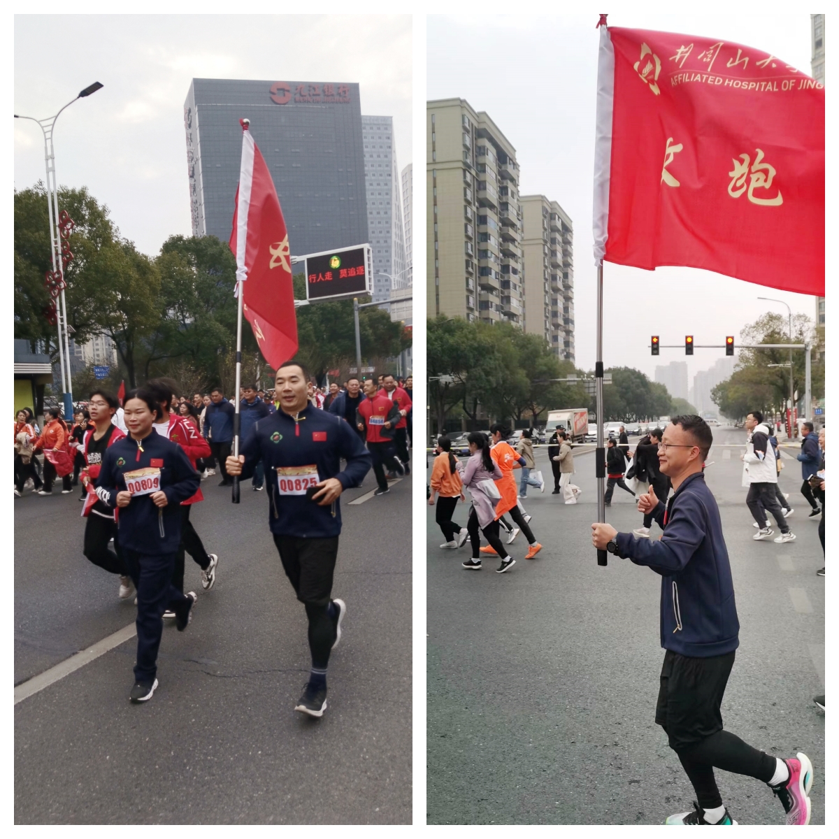 上午9时30分许,在参加暖场热身、奏唱国歌、健身倡议、推杆启动仪式后,随着出发的鸣笛,我院职工在长跑队队长陈龙的带领下,手持队旗奋力奔跑。每一位参赛队员的脸上都洋溢着笑容,斗志昂扬,充满活力,展现出附院人朝气蓬勃、争先创优的精神风貌。